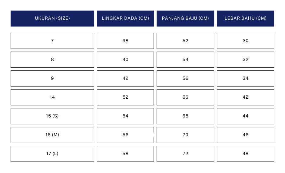 - Lebar Bahu: Ukur dari ujung tulang bahu kanan sampai ujung tulang bahu kiri.