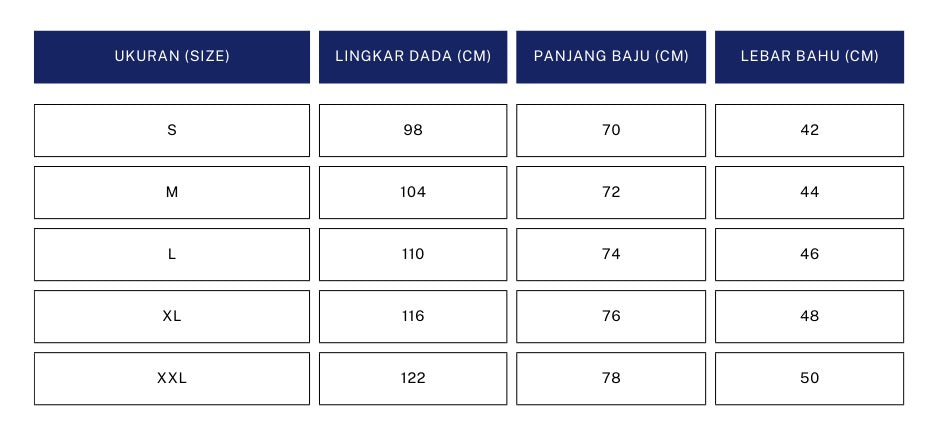 - Lingkar Dada: Ukur sekeliling bagian dada , pastikan meteran pas (tidak terlalu ketat/longgar).